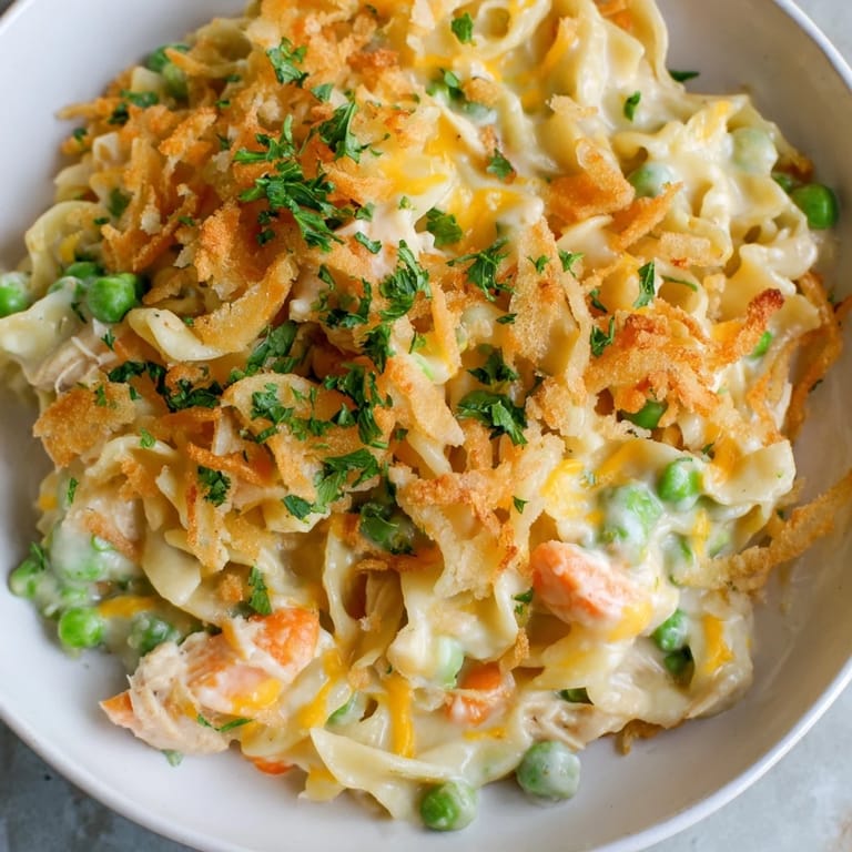 Substitute rotisserie chicken for convenience. Add sautéed mushrooms or bell peppers for extra flavor. Use whole-wheat noodles for added fiber. Pairs well with a simple green salad and a crisp white wine.