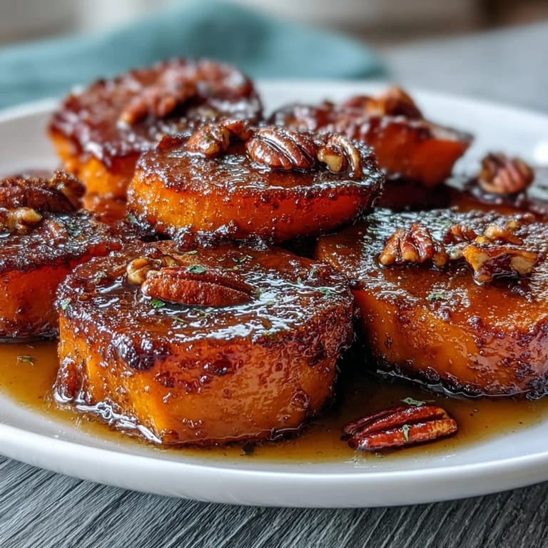 Dieses Rezept lässt sich auf vielfältige Weise anpassen. Wer den Alkohol meiden möchte, kann den Bourbon durch Apfelsaft oder Apfelessig ersetzen, um eine ähnliche Tiefe im Geschmack zu erzielen. Die Pekannüsse können durch Walnüsse ersetzt oder ganz weggelassen werden, um das Gericht baumnus-frei zu gestalten. Für eine noch intensivere Karamellnote empfiehlt es sich, dunkelbraunen Zucker anstelle von hellem braunem Zucker zu verwenden.