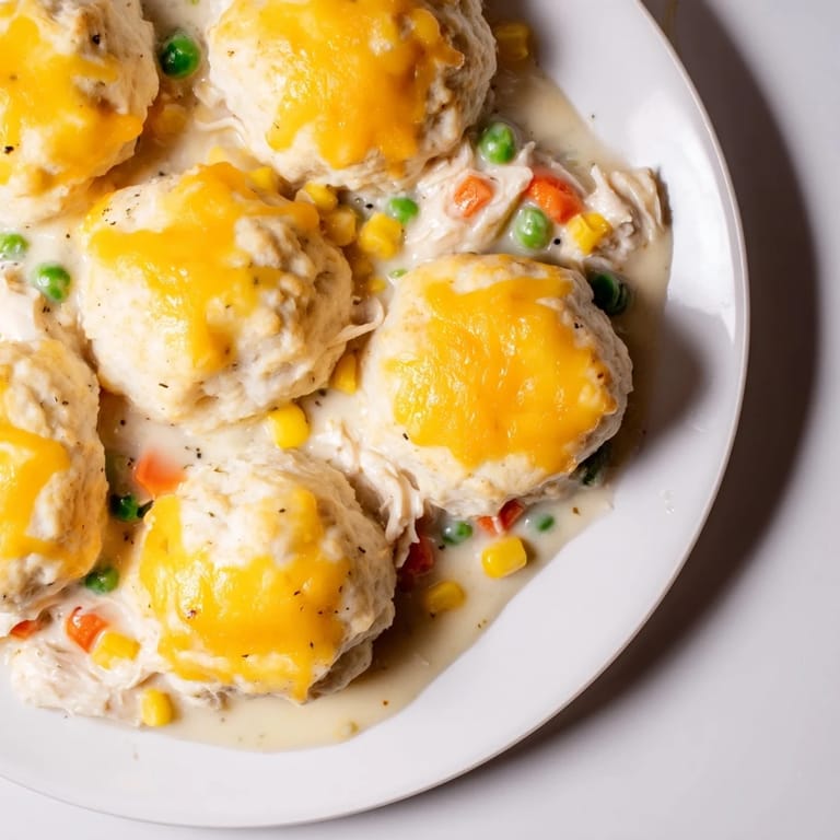Pin It I think back to a gray Saturday afternoon when my neighbor came over unexpectedly, and I threw this together in her presence. Seeing her taste those fluffy, cheesy biscuits with that creamy chicken underneath reminded me that cooking isn't about perfection—it's about warmth, generosity, and a willingness to feed the people you care about.