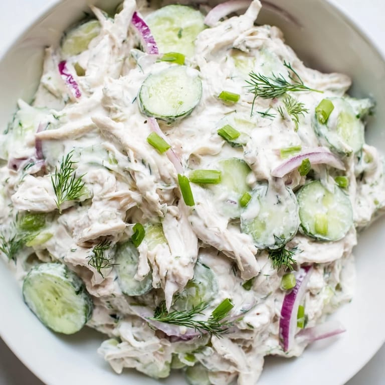 Pin It My neighbor showed up at my back door with a bowl of this last June, and I ate it standing at the counter. The chicken was so tender it almost melted, and the cucumbers snapped with every bite. She said she'd been making it all week because her garden was drowning in dill and she needed to use it before it bolted. I asked for the recipe immediately, and she laughed and said there wasn't one, just yogurt and whatever felt right.