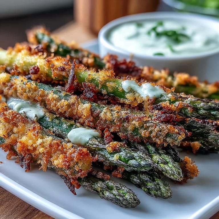 Pin It My roommate came home one evening complaining about missing fried food while trying to eat better, so I decided to prove that vegetables could be just as craveable as any greasy appetizer. I grabbed a bunch of asparagus from the farmers market, tossed together some panko and spices, and by the time they walked into the kitchen, the smell of chili-garlic and toasted cheese had them hovering over the baking sheet. What started as a quiet dinner became an impromptu tasting where they couldn't stop reaching for one more spear, and I realized I'd accidentally created something addictive.