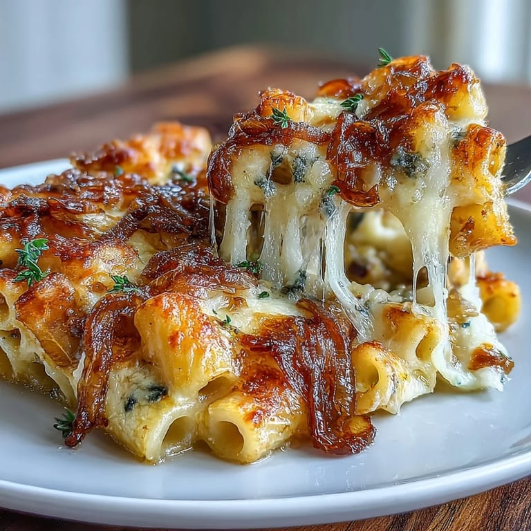 Pin It This French Onion Soup Pasta Bake is the ultimate comfort fusion, bringing together the rich, savory depth of a classic French bistro favorite with the heartiness of an Italian pasta casserole. Imagine sweet, slow-cooked caramelized onions and a velvety cream sauce tossed with rigatoni, all finished under a bubbling blanket of melted Gruyère and mozzarella cheese.