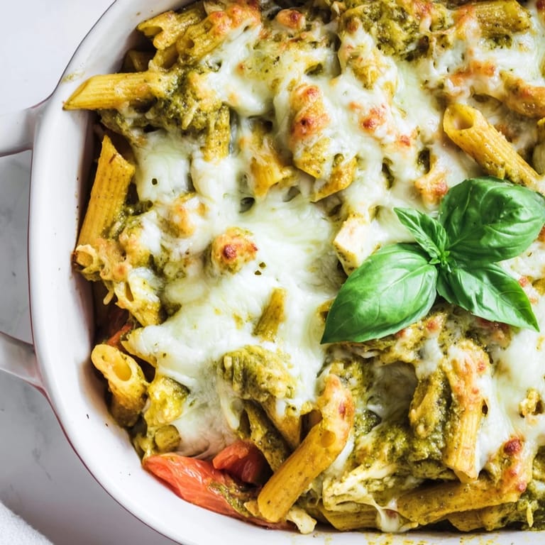 Pin It The oven door clicked shut, and I leaned against the counter, watching the cheese start to bubble through the glass. My daughter had invited three friends over without much notice, and I'd been staring into the fridge trying to invent dinner from leftovers. That's when I spotted the jar of pesto I'd forgotten about, tucked behind the milk. Twenty minutes later, this pasta bake was in the oven, and I felt like I'd just pulled off a small miracle.