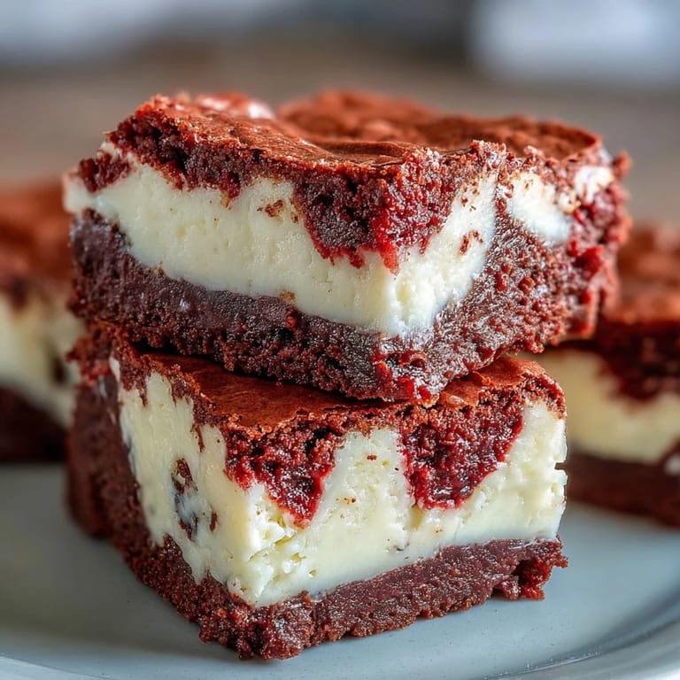 I've stirred white chocolate chips into the brownie batter before spreading it, and the pockets of melted sweetness are a revelation. A friend of mine swirls in raspberry jam alongside the red velvet for a fruity twist, and another dusts the top with powdered sugar before serving for a snowy, elegant look. The base recipe is forgiving enough to handle your wildest ideas, so don't be afraid to experiment.
