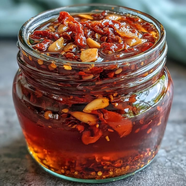 Pin It Bring a burst of authentic Italian heat to your kitchen with this Spicy Calabrian Chili Oil. This fiery, aromatic infused oil is the ultimate pantry staple, combining the bold kick of dried chilies with the mellow sweetness of slow-cooked garlic and savory herbs. Whether you're a heat-seeker or just looking to add depth to your cooking, this easy-to-make oil is the perfect finishing touch for your favorite Mediterranean dishes.