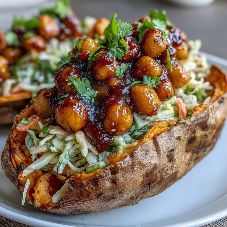 These stuffed potatoes are a complete meal on their own, but they also pair beautifully with a side of grilled corn or a light garden salad. Serve them immediately after assembly while the chickpeas are still hot and the slaw remains perfectly crisp for the best experience.